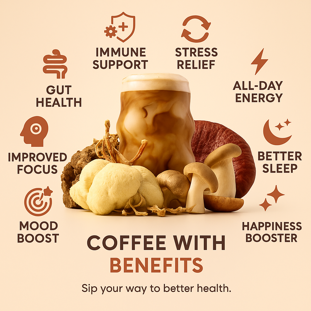 Crafted with functional mushrooms, Ayurvedic adaptogens, and real coffee, this blend delivers calm energy, laser focus, and immunity support without the jitters or crash.